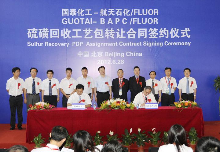 6月28日,北京航天石化與鄂爾多斯市國泰化工有限公司就美國福陸公司硫回收工藝包轉(zhuǎn)讓合同,進行了簽約儀式,儀式在北京中國國際展覽中心舉行,《中國化工報》以專題報道的形式,在7月3日二版科技創(chuàng)新版面對簽約相關事項進行了頭條刊登。